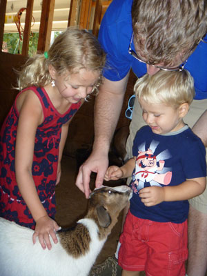 Isabel was usually off on her own in this petting zoo, so I didn't get a wide variety of pictures of her with animals. The ones I did get are of her with the Llama and the Brahama Bull (calf).